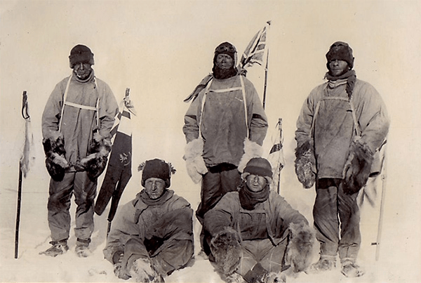 Amundsen’s crew left 20 days before Scott, using sled dogs.