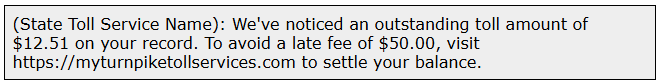 These texts claim recipients owe money for unpaid tolls and use nearly identical language across reports. The “outstanding toll amount” remains consistent among complaints filed with the IC3. However, the provided link is designed to mimic the state’s toll service name, and phone numbers vary between states.