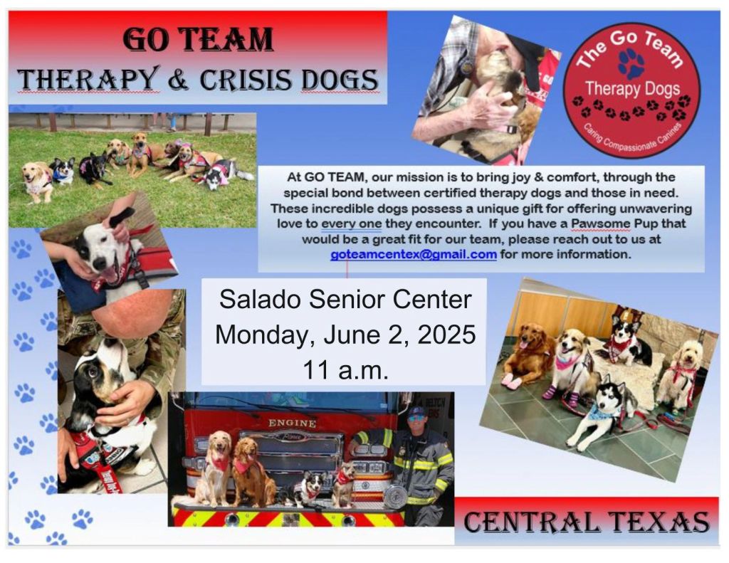 The Salado Senior Center has released their June pop-up events calendar and here are a few things of note happening this Monday, June 2nd.