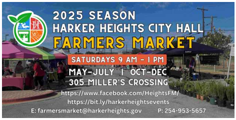 And there is an event for all ages today in Harker Heights, beginning with the City Hall Farmers Market, open right now until 1pm. This event is located at 305 Miller’s Crossing and is every Saturday through the month of July. For more info, check them out on Facebook as they have their own page.
