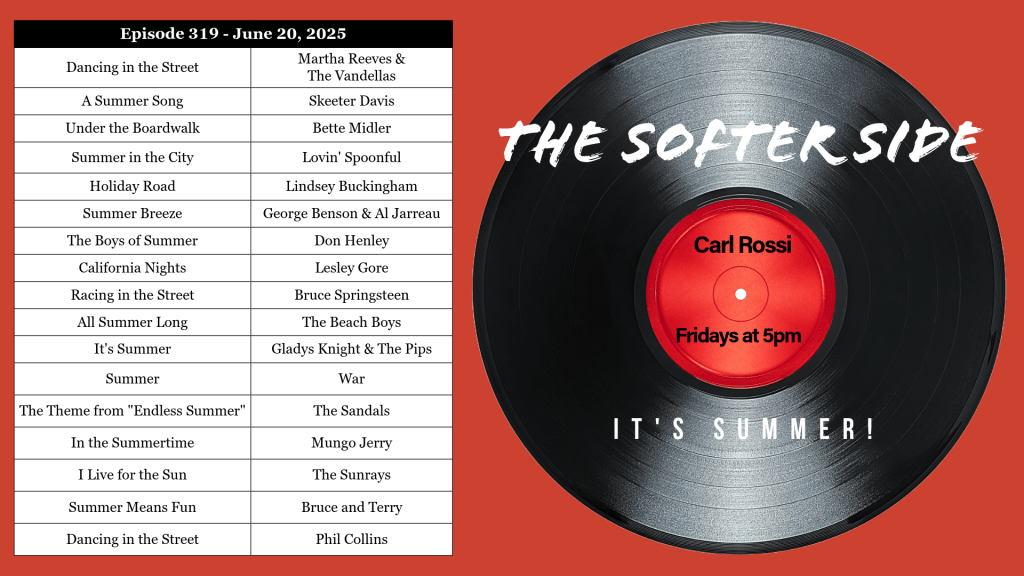 As daylight lingers into the evening on this summer solstice, tune in to KNCT at 5 p.m. for The Softer Side with Carl Rossi, where we’ll celebrate timeless acts like The Sandals. Let the music wash over you—just close your eyes and drift to a place where the sun never fades and the waves play on forever.
