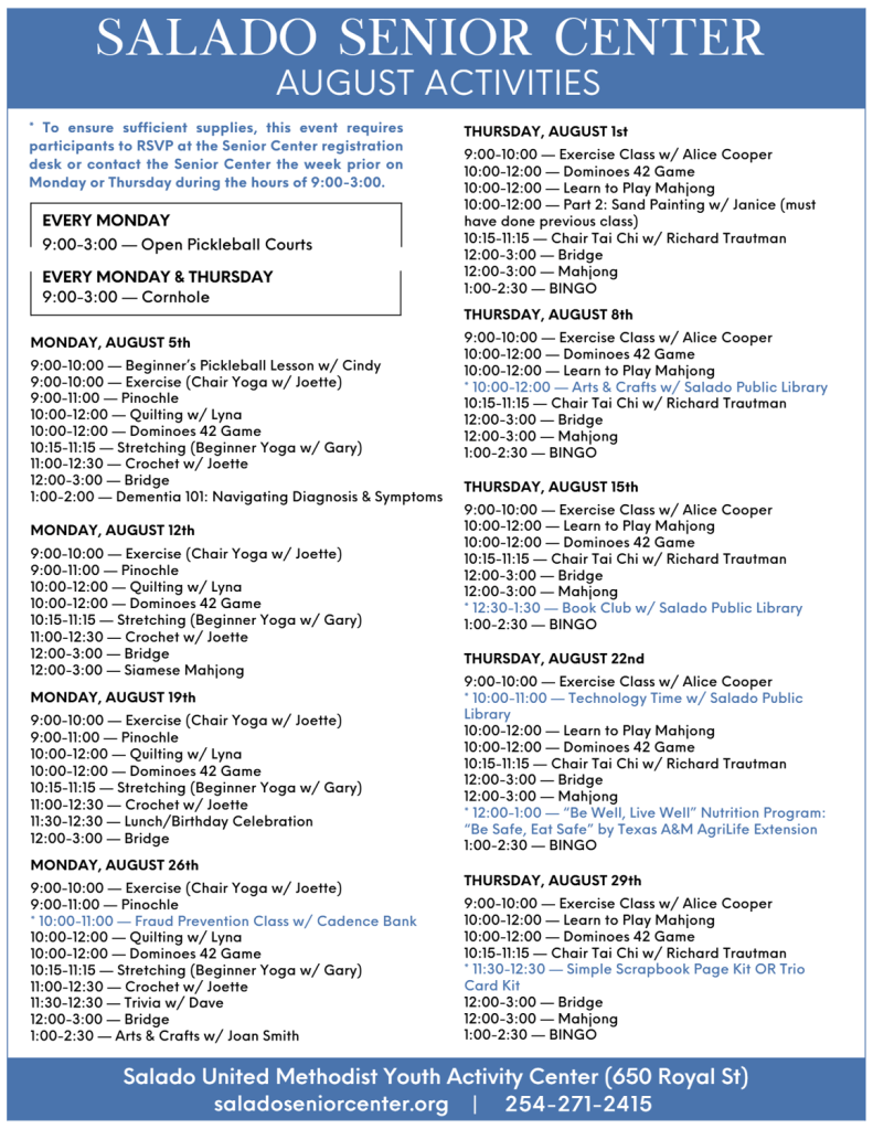 - 📄 Full August Schedule at SaladoSeniorCenter.org