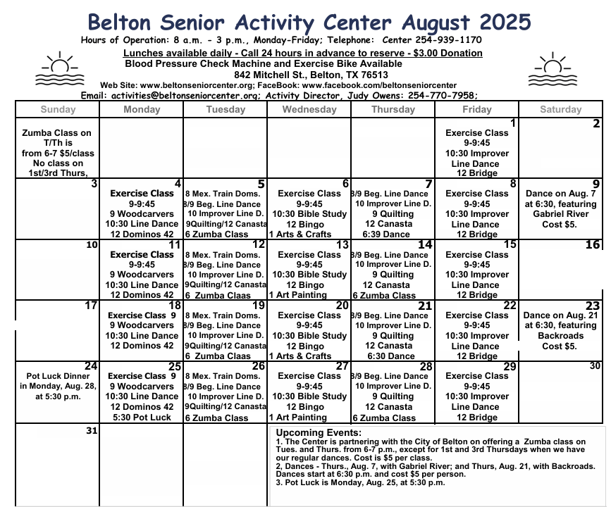 Belton Senior Activity Center Wraps Up August with Heart, Harmony, and Hometown Joy