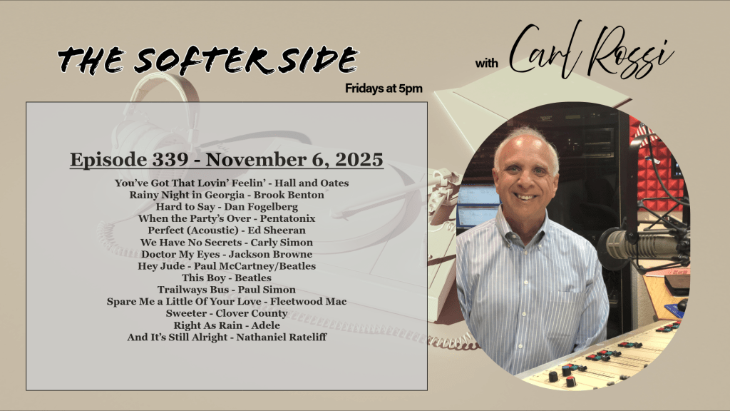Tonight on The Softer Side with Carl Rossi, we open with Hall & Oates’ soulful rendition of “You’ve Lost That Lovin’ Feelin’,” a timeless ballad that found renewed fame in the 1980s thanks to a memorable scene in the blockbuster film Top Gun.