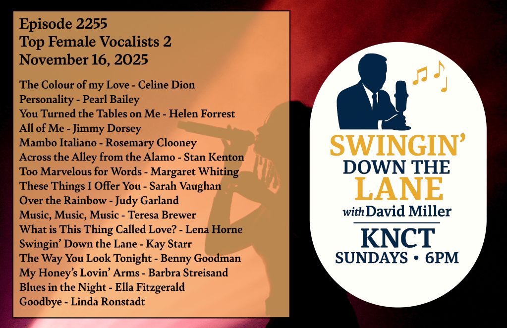 Tonight’s episode of Swingin’ Down the Lane with David Miller continues the celebration of some of the most outstanding female vocalists of the 20th century. Episode #2255, airing Sunday, November 11, 2025, at 6 p.m., features a carefully curated playlist highlighting timeless performances that shaped popular music across generations.