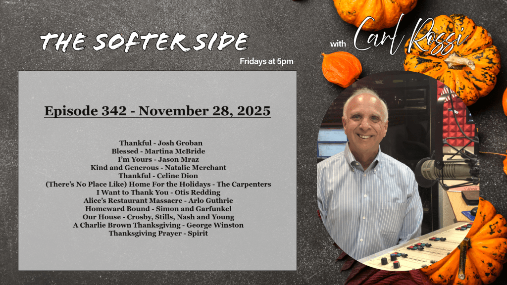 Carl Rossi’s signature warmth and thoughtful commentary make The Softer Side more than just a playlist—it’s a weekly tradition that brings comfort, connection, and a gentle reminder of what matters most.