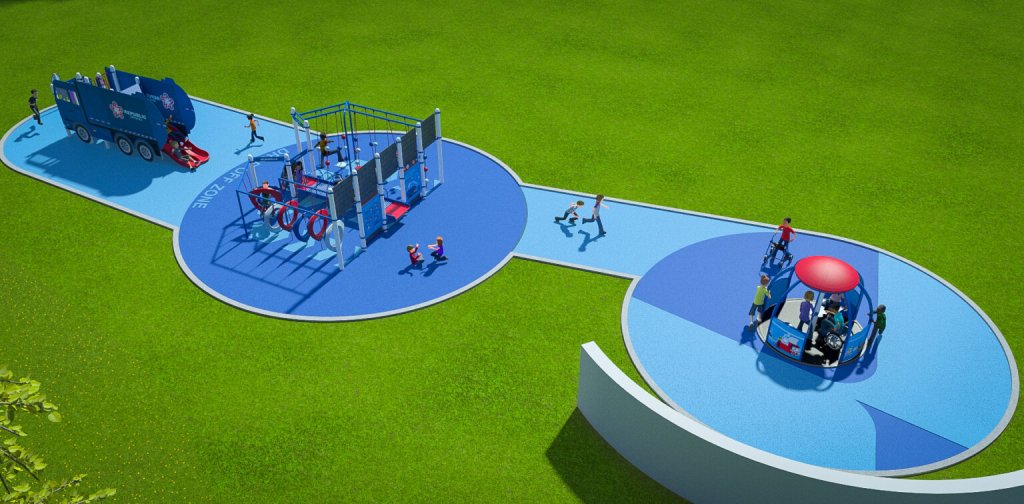 Funding for the $536,468 project includes a $250,000 grant from Republic Services to the Play for All Foundation, a nonprofit that has supported the park since its inception. The remainder will come from the voter-approved bond package. Republic Services, which provides trash and recycling services to Round Rock residents, is also represented in the design of the new equipment. Features will include a recycling truck slide, an interactive “recycling center,” and an accessible globe spinner wall.