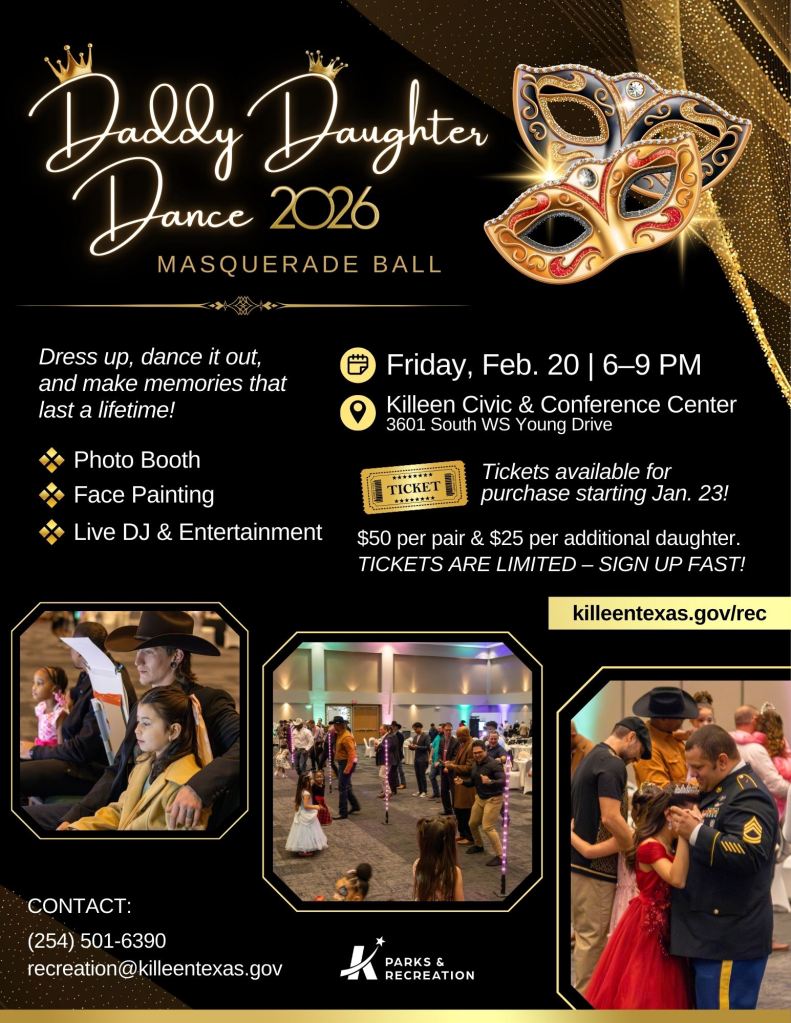 She also shared details on several major events returning to the city. The annual Daddy Daughter Dance is set for February 20 at the Killeen Civic and Conference Center, promising an evening of music, activities, and family memories.
