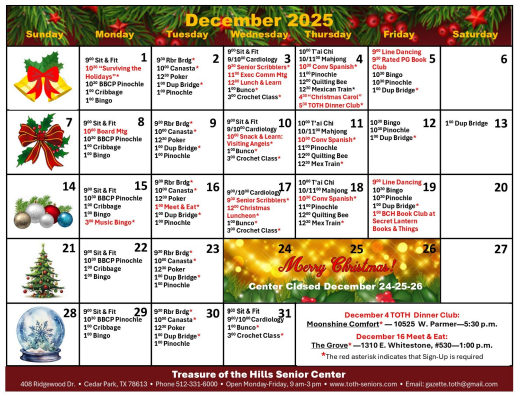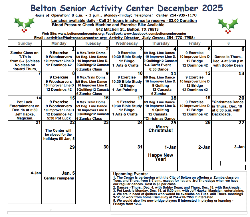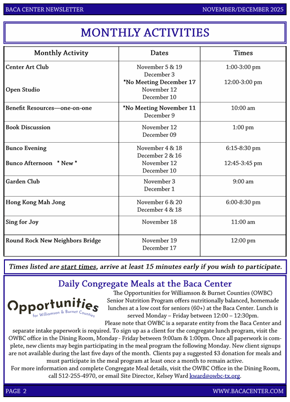 - Senior Center is now managed and operated by the Hill Country Community Action Association, more information at HCCAA.com.