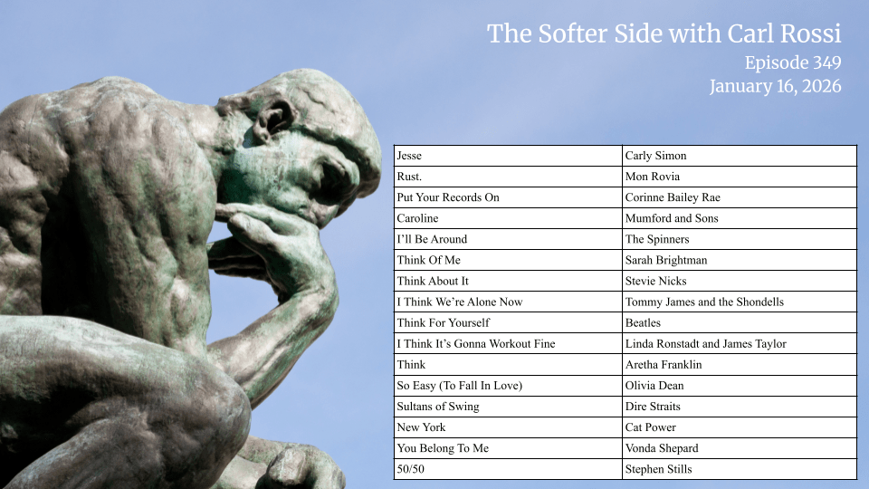 This is Carl Rossi and I invite you on a journey each week to the Softer Side.